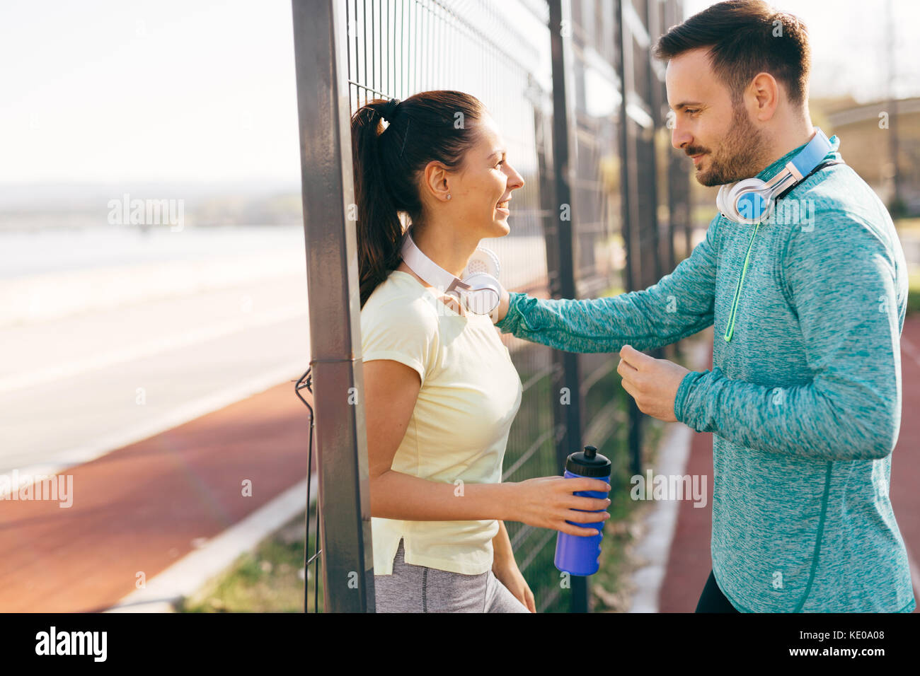 Man Woman Flirt Fitness Stock Photos Man Woman Flirt