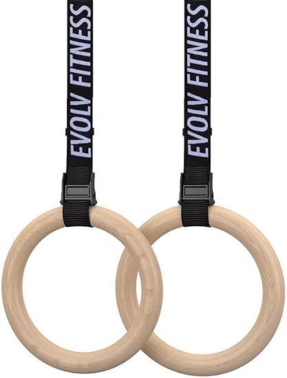 Evolv Fitness Wooden Gymnastics Rings Adjustable Straps