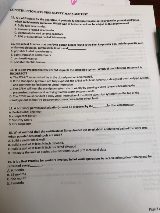 Solved Construction Site Fire Safety Manager Test 14 A C