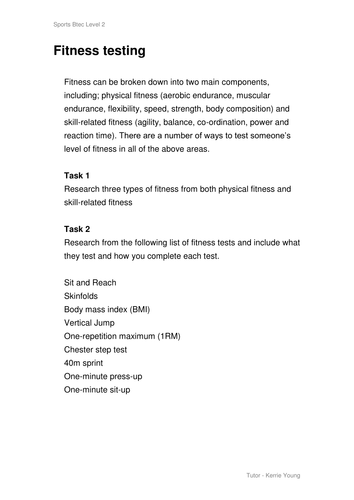 Btec Sport Unit 1 Fitness Testing Unit Of Work