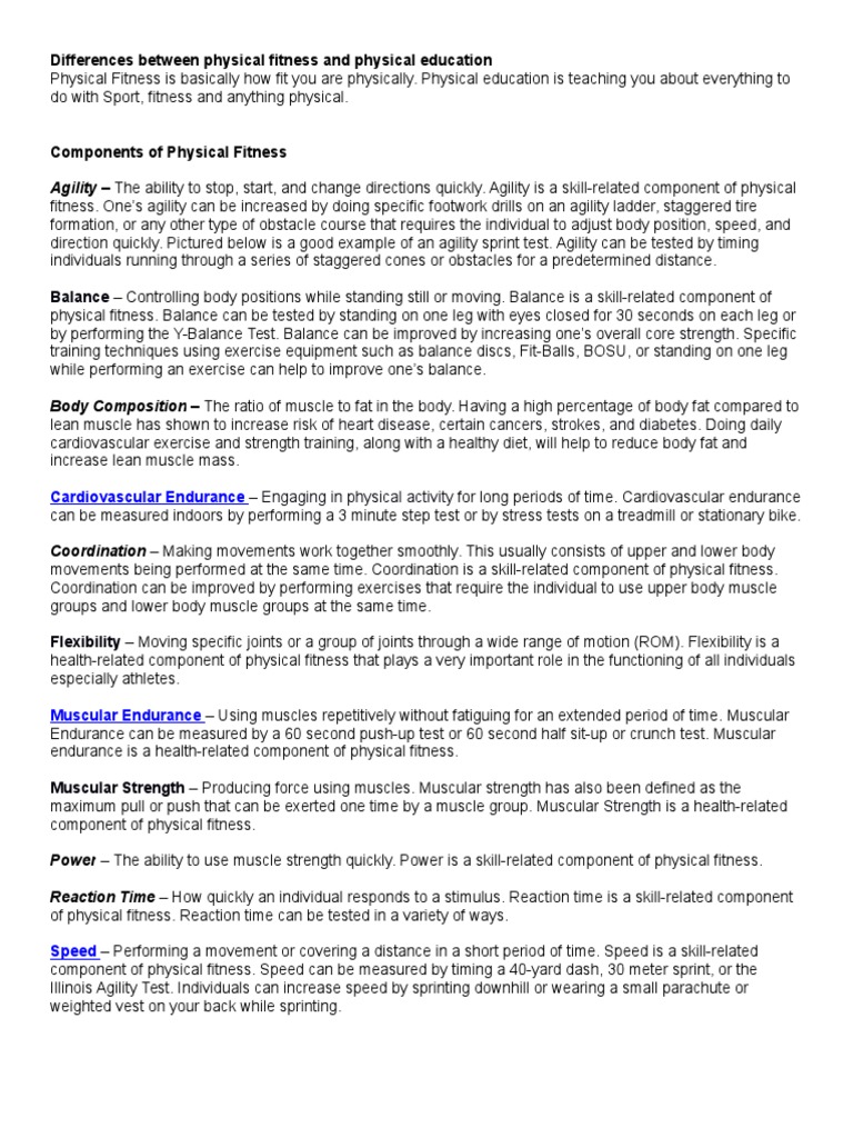Components Of Physical Fitness Test With Definition