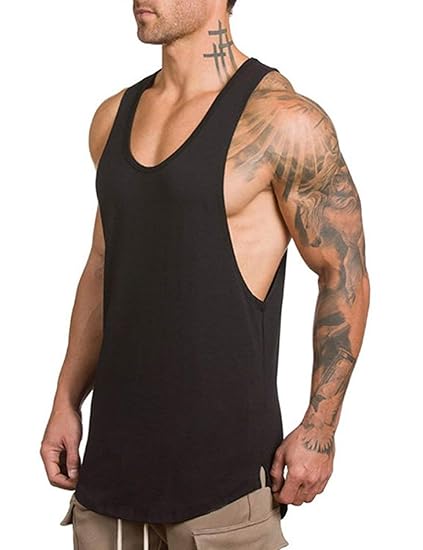 Mens Extended Scoop Workout Tank Tops Gym Shirts For Men Gym Breathable Stretch Cotton Quick Drying Stretch Wicking Tank Top