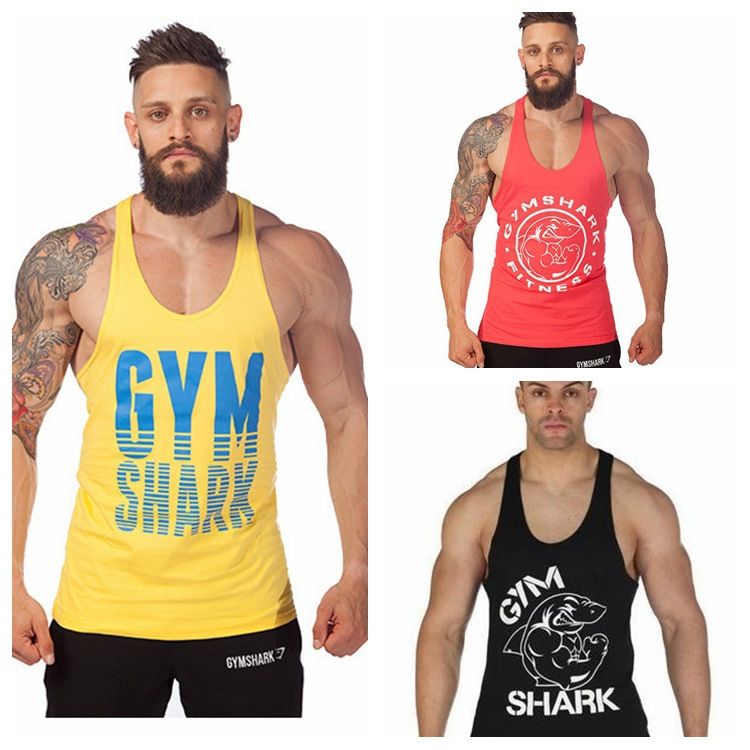 Summer Style Bodybuilding Cotton Shark Workout Tank Tops Men Camo Gymshark Stringer Fitness Muscle Mens Shirt Gasp Gold