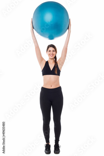 Fitness Enthusiast Holding Ball Above Her Head Buy This