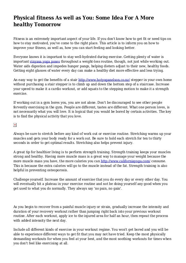 Physical Fitness As Well As You Some Idea For A More