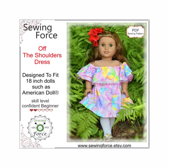 Off The Shoulder Dress Pdf Sewing Pattern Desighned To Fit 18 Inch Dolls Such As American Girl Doll Dress Outfit Gown Instant Download