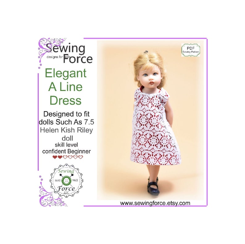 Elegant A Line Dress Pdf Sewing Pattern For Dolls Such As 7 5 Inch 19cm Helen Kish Riley Doll Instant Download Doll Gown Doll Clothes