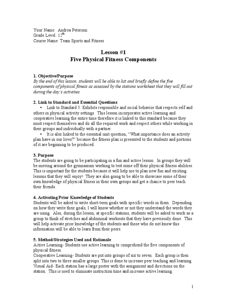 Fitness Components Of Fitness Do Now List Activities