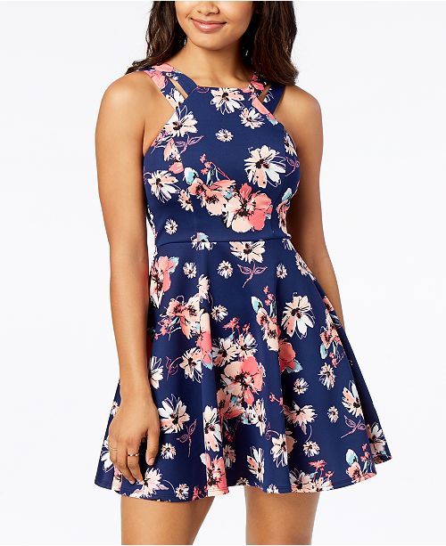B Darlin Juniors Printed Double Strap Fit Flare Dress