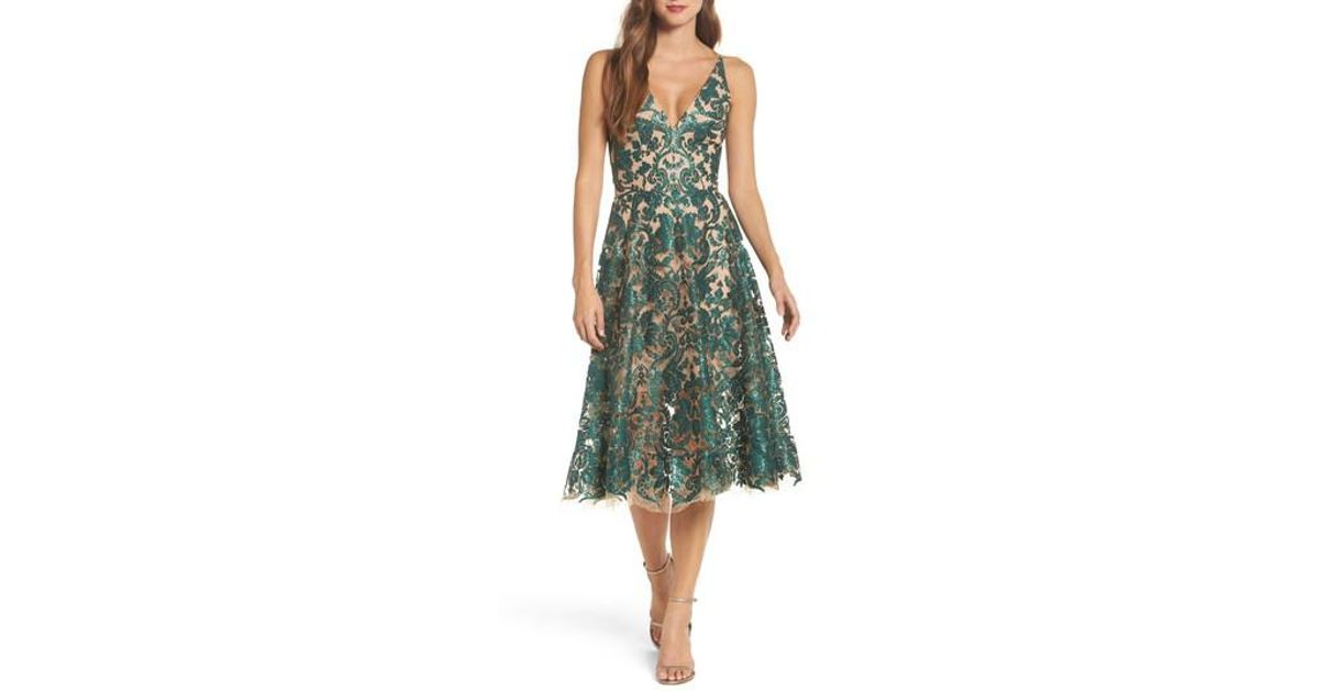 Dress The Population Blair Embellished Fit Flare Emerald Nude Dress