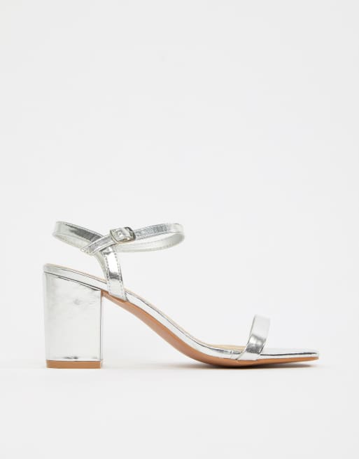 Glamorous Wide Fit Silver Barely There Block Heeled Sandals