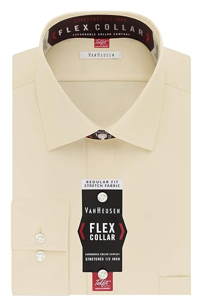Van Heusen Men S Flex Collar Regular Fit Solid Spread Collar Dress Shirt Harvest Stretch 17 5 Neck 32 33 Sleeve